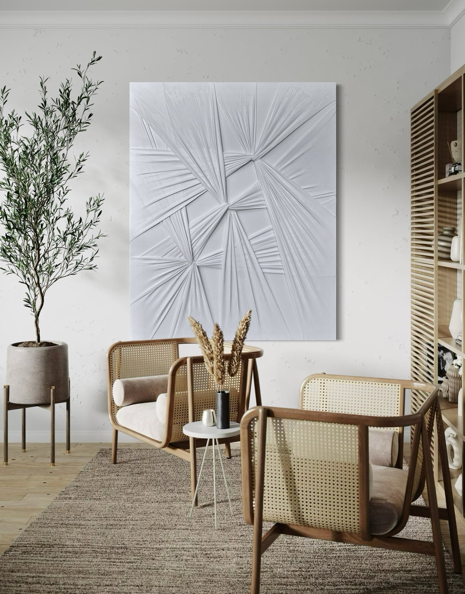 Explore the world of personalized fabric art, unique plaster designs, and captivating accent walls. Have a vision in mind? Share it with us - inquire here for a customized masterpiece.